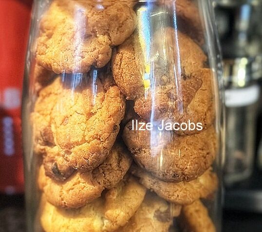 OLIEKOEKIES Resep en foto: Ilze Jacobs Ek deel ‘n resep wat ek op allrecipes.com gekry het, maar aangepas het na ons smaak. ‘n Maklike en vinnige koekieresep, en goedkoop ook. 190 ml olie (ek gebruik Canola) 190 ml suiker 2 eiers 10 ml vanilla geursel 625 ml koekmeel 5 ml koeksoda ½ teelepel sout 250 […]