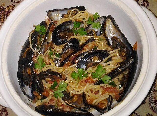 WENNER MOSSELPASTA Resep geplaas deur Gideon Louw Foto: Gideon Louw My aand kossies is my pasta gereg saam met mossels en dit WAS lekkkkr! 2 eetlepels ongesoute botter ½ pakkie spek 2 shallots, gekap 1 koppie witwyn ¼ teelepel rissievlokkies 1 groot blik geblikte tamaties (ons het vars tamaties gebruik) 5 koppies rou spaghetti ¼ […]