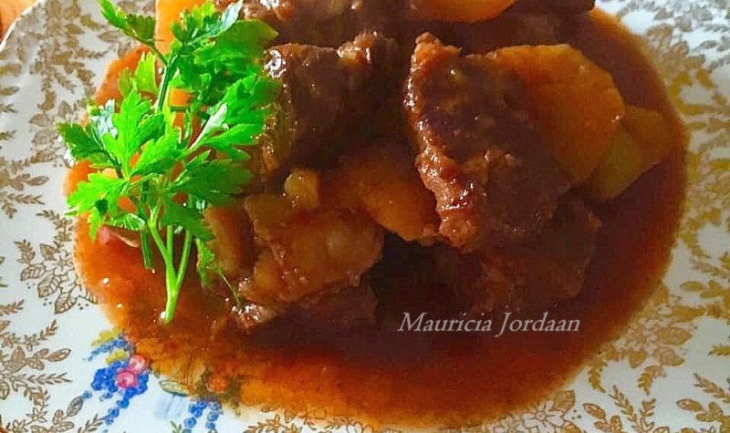 MAALVLEISPASTEI MET OORGOOI DEEG 1 kg maalvleis 500 ml koue water 250 ml sagte broodkrummels 25 ml asyn 10 ml sout 1 ml peper Kors: 1 eier 125 ml melk 125 ml olie 250 ml koekmeel 10 ml bakpoeier 2 ml sout Plaas al die bestanddele vir die vulsel in ‘n kastrol en meng met […]