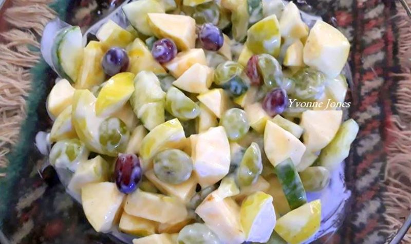 VERFRISSENDE APPELSLAAI 4 – 5 appels, in blokkies gesny ½ komkommer, in blokkies gesny 1 koppie druiwe, gehalveer (groen en rooi lyk mooi saam) 1 handvol bosbessies (cranberries) neute, opsioneel 1 ½ koppie wit jogurt 1 eetlepel mayonnaise 1 eetlepel Griekse slaaisous 1 eetlepel stroop of heuning Meng die appels, komkommer met die druiwe, bosbessies […]