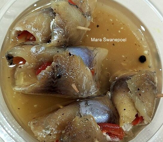 GEMARINEERDE BOKKOMS OF VISBILTONG Die hoeveelheid van bestanddele is volgens eie smaak en keuse. bokkoms agurkies, opgesny in repies uitjies, gesny in skywe peppadews, opgesny in repies olyf olie suurlemoenpeper knoffel en kruie speserye Vlek die bokkoms oop en maak dit skoon. Deel elke vissie in 2 en plaas agurkies, uitjies of peppadews na keuse […]