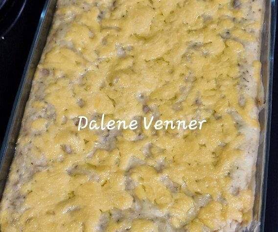 TUNATERT MET WITSOUS Kors: 1 koppie bruismeel 110 g margarien 1 koppie gerasperde kaas Witsous: 1 koppie bruismeel 110 g gerasperde kaas 4 koppies melk sout 1 teelepel mosterdpoeier Vulsel: 2 blikke tuna (sous ook) 2 koppies gerasperde kaas 1 eetlepel gerasperde uie 1 eetlepel pietersielie 1 eier, geklits Ekstra: gerasperde kaas vir bo-oor sprinkel […]