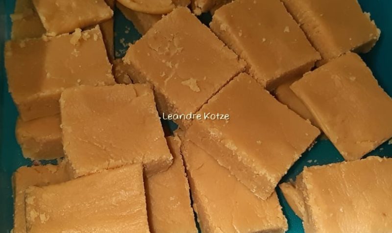 MAKLIKSTE FUDGE 1 blik kondensmelk 500 g versiersuiker 250 g Rama/Stork margarien (nie spread nie) 5 ml vanilla geursel Smelt margarien en meng kondensmelk en versiersuiker daarby in. Kook op medium hitte vir ± 20 minute terwyl jy heeltyd roer. Verwyder van hitte en voeg geursel by. Klop met lepel tot net BEGIN verdof en skep […]