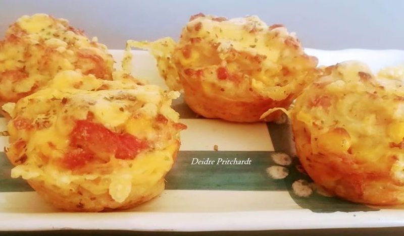 BLOMKOOL KOEKIES 1 koppie effens gaar blomkool, fyn gedruk 1 x 250 g gevriesde heel pit mielies, opsioneel 1 x pakkie spek, in stukkies gesny 2 eiers 1 koppie bruismeel gemengde kruie, na smaak Aromat na smaak Ekstra: gerasperde kaas Meng al die bestanddele saam. Skep lepels vol in gespuite muffinpan. Bak tot goudbruin in […]