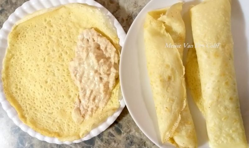 KOFFIEWINKEL PANNEKOEK 4 eiers 3 koppies water 2 koppies koekmeel 1 teelepel bakpoeier ½ teelepel sout Meng eiers en water tot skuim. Meng die meel, bakpoeier en sout saam en meng in by die eiersmengsel, klits goed tot skuim weg is. Spuit die pan met kos sproei. Gebruik kleefwerende pan. Maak goed warm. Skep genoeg […]