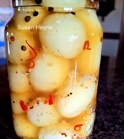 PIEKEL AARTAPPELS 1 kg baba-aartappels Piekel: 500 ml witasyn of appelasyn vir ’n ligter smaak 250 ml water 3 – 4 eetlepels suiker 2 eetlepels sout 3 – 4 knoffeltoontjies, gekap 1 – 2 teelepels swartpeperkorrels 1 teelepel mosterdsaad 1 – 2 lourierblare ’n paar rooipepervlokkies of vars kruie soos tiemie of roosmaryn, opsioneel Was […]