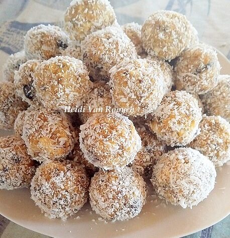 DADELBALLETJIES SONDER EIERS 250 g margarien of botter ¾ koppie suiker 500 g opgesnyde dadels 1 pakkie Marie beskuitjies, fyngemaak ¾ koppie klapper ekstra klapper om bolletjies in te rol Verhit margarien en suiker tot suiker gesmelt is. Voeg die dadels by en hou aan verhit tot dadels sagter is. Meng die klapper en beskuitjies […]