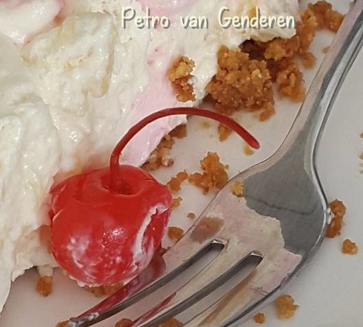 GEBAKTE MILJOENERS KAASKOEK Die Amerikaanse miljoener tert bak ‘n mens nie en kry ook nie roomkaas in nie. Persoonlik hou ek van ‘n gebakte kaaskoek. En dit aangepas om ‘n gebakte kaaskoek te verkry. Kors: 1 pakkie Tennisbeskuitjies, fyn gemaak 80 – 100 ml gesmelte margarien/botter Vulsel: 2 houers maaskaas 1 blikkie kondensmelk 125 ml […]