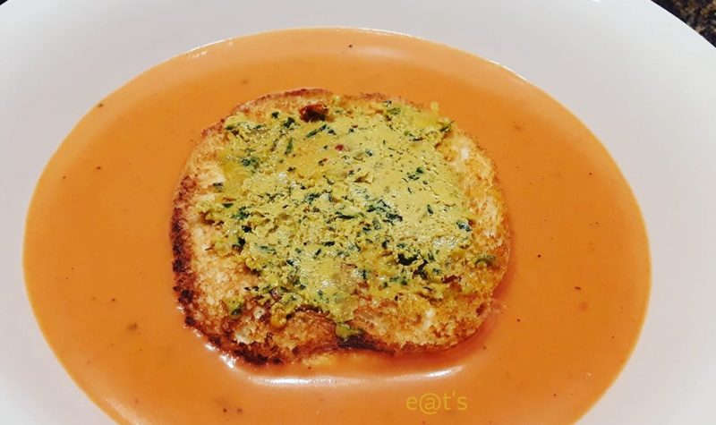 CREAM OF TOMATO SOUP WITH CAFé DE PARIS HERB BUTTER ON TOAST