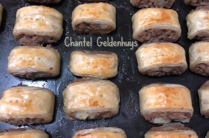 OUTYDSE WORSROLLETJIES PROE HAPPIES 1 ui, fyn gekerf klont botter knerts olyfolie 1 kg maalvleis 2 aartappels, fyn gesnipper 500 ml water 2½ teelepels sout swartpeper, na smaak koljander, na smaak geklitste eier skilferkors deeg Braai ui in botter en olyfolie, voeg maalvleis by en braai tot bruin. Snipper aartappels in, klein en fyn sodat […]