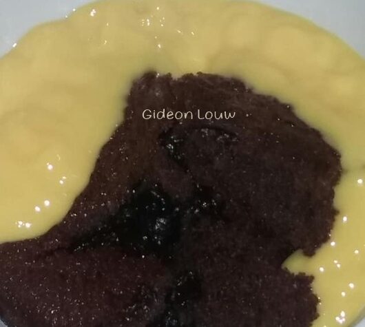 SJOKOLADE POEDING Gisteraand se heerlike sjokolade poeding saam met boksie vla na die heerlike hoender noedelpot. Sjokoladesous: 1 ½ koppie water 1 ½ koppie bruinsuiker 3 eetlepels kakao Kook bestanddele saam vir ‘n paar minute en hou warm terwyl beslag gemaak word. Beslag: ¼ koppie botter ¾ koppie suiker 1 eier 1 koppie meelblom 3 […]