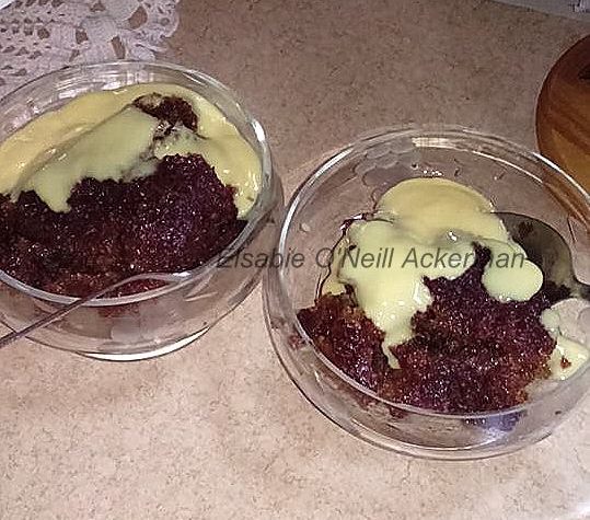DADELPOEDING IN ‘N OONDPAN Vir ‘n “alkoholvrye” opsie het ek die Brandewyn met appelsap vervang en karamel geursel gebruik in die plek van vanilla, soos gesien kan word op die foto, is heerlik en ‘n lekker groot poeding. Deeg: 500 g fyngesnyde dadels 2 koppies kookwater 2 teelepels koeksoda 1 ½ koppie suiker 2 eetlepels […]