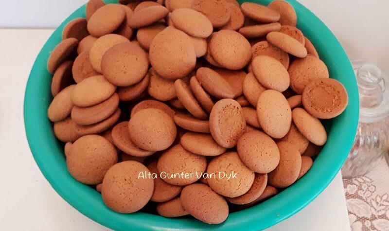 OUMA SE GEMMERKOEKIES Stroopmengsel: 500 g botter 500 g gouestroop, (nie kook nie) 3 ½ teelepels koeksoda 2 eetlepels lou water 5 koppies geelsuiker 6 groot eiers Droëmengsel: 12 koppies koekmeel 1 teelepel sout 3 ½ teelepels kremetart 150 ml fyn gemmer Smelt die botter en stroop saam, nie kook nie. As dit gesmelt is, […]
