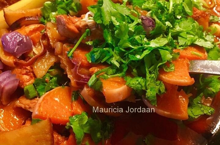 HOENDER, KEKERERTJIE EN EIERVRUGKERRIE MET KLAPPERMELK Maak eers die kerriesous en sit dan die stukkies gesnyde hoender borsies by sodat die hoender nie te lank kook en kliphard word nie. 1 groot ui, gekap 1 teelepel knoffel, gerasper of fyngedruk 2 teelepels gerasperde vars gemmerwortel sap van 1 suurlemoen 1 medium groote eiervrug, afgewas, droog […]