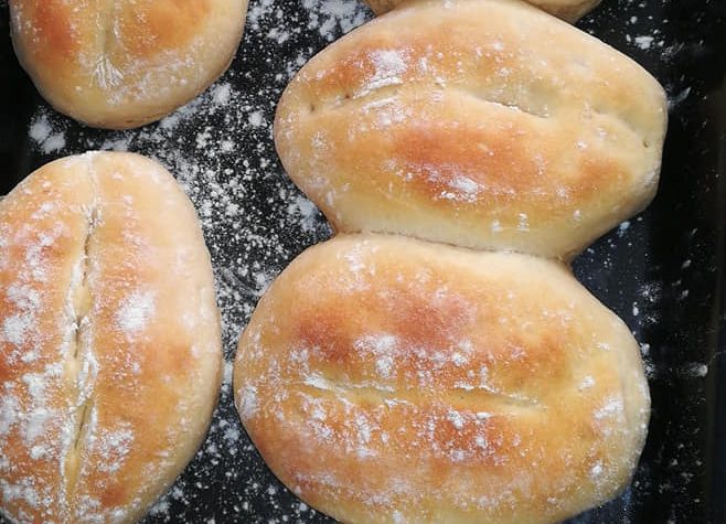 HOMEMADE PORTUGUESE ROLLS 5 cups of all purpose flour (plus more for kneading) 1 ¼ tablespoons salt 1 ¼ tablespoons sugar 1 packet of active dry yeast or instant yeast 3 cups warm water Mix 1 cup water, sugar, salt, yeast and 1 cup flour in a bowl. Leave to froth, about 15 minutes. Place […]
