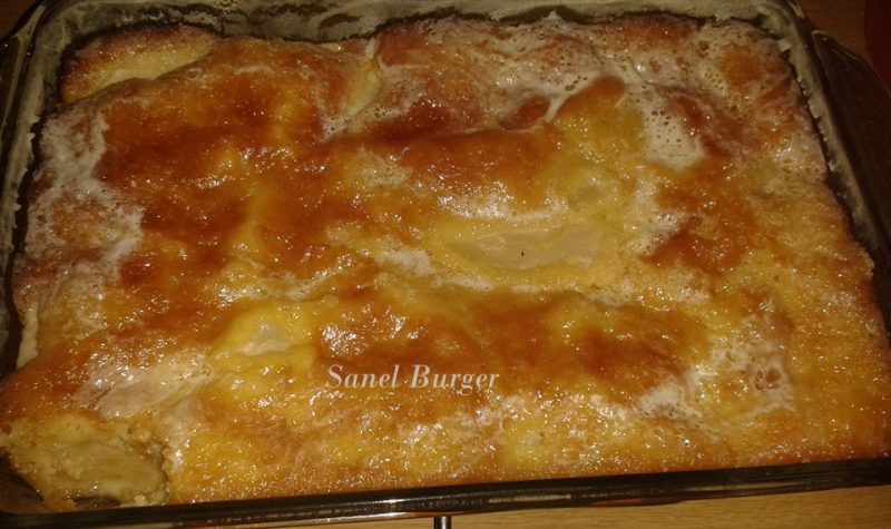 SANEL SE LEKKERSTE APPELTERT OOIT Beslag: 250 ml suiker 3 eetlepels botter 3 eiers knippe sout 250 ml koekmeel 75 ml melk 1 teelepel bakpoeier 1 blik appels – genoeg om hele tert te kan pak, klein blikkie gewoonlik genoeg Sous: 200 ml suiker 3 eetlepels botter 1 teelepel vanilla 125 ml melk 1 blikkie […]