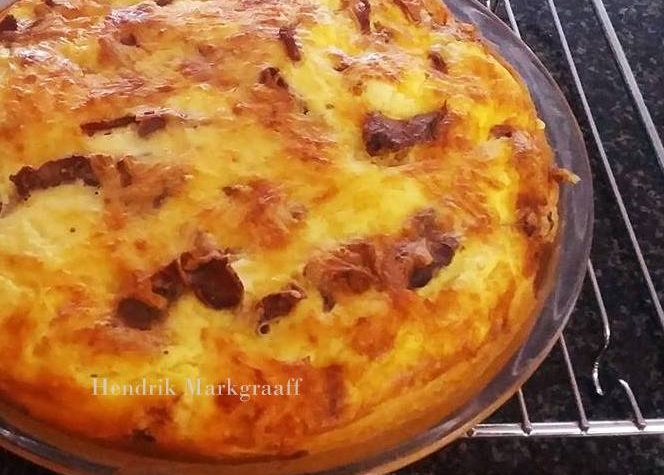 HENDRIK SE BILTONGTERT 1 rol skilferkorsdeeg 160 g klam biltong 1 koppie gerasperde kaas 250 ml room 2 ekstragroot eiers (of 3 groot eiers) Verhit oond tot 180 ºC. Rol deeg op meelbestrooide oppervlak uit. Plaas die deeg in die tertbak (spuit met spray en cook) moenie deeg rek nie (dit krimp terug as dit […]
