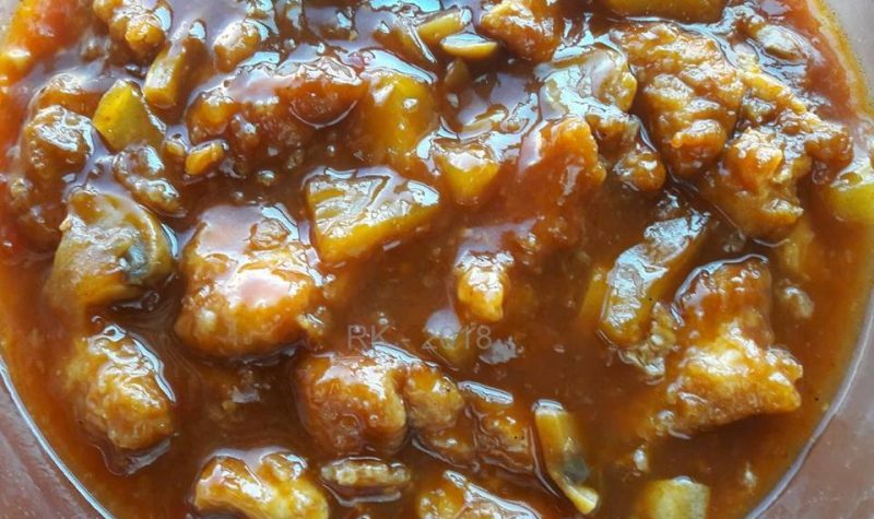 SOET SUUR HOENDER MET SAMPIOENE EN PYNAPPEL