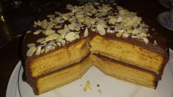 Hierdie is ‘n tradisionele Duitse koek en omdat hy soveel lagies het en hy tradisioneel gebak word oor ‘n roller wat dan ‘n gat in die middel maak, laat dit jou dink aan die jaarringe van ‘n boom en vandaar die naam. Baie lekker, glad nie soet nie. Ek het dit vanmiddag in Philipstown geëet, en die eienaar van Bokskryt het toe die resep met my gedeel. Probeer dit gerus.