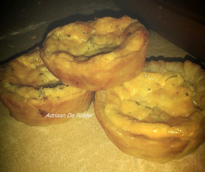 • Ek het toe die Biltong en Kaas Quiche gemaak vanoggend en dit het briljant uitgekom dink ek. Ek het net bietjie ekstra pietersielie ingegooi vir kleur. So individueel in muffin panne bak sit dan vir 24 minute.