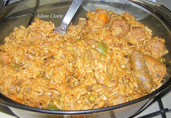 - Verlaag die hitte, sit deksel op en prut tot rys sag en vloeistof verdamp het.