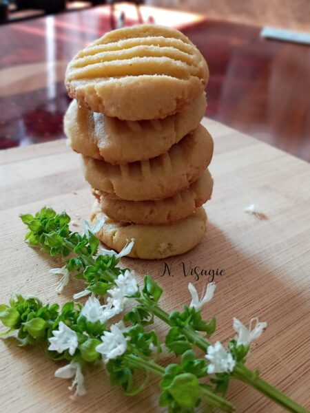 I didn’t use the cookie gun in this recipe, but rather dipped a fork in castor sugar and pressed down on walnut sized balls of cookie dough.