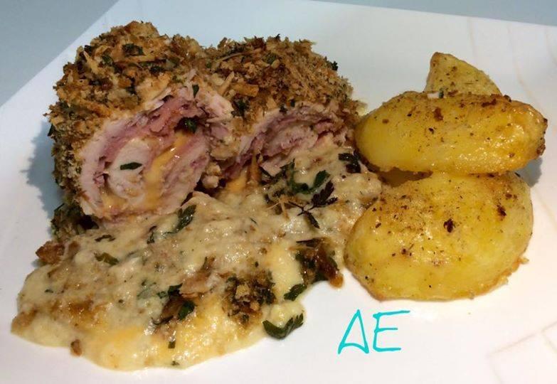 Stir in the cheese and Dijon mustard then season to taste and pour over the chicken roll ups.