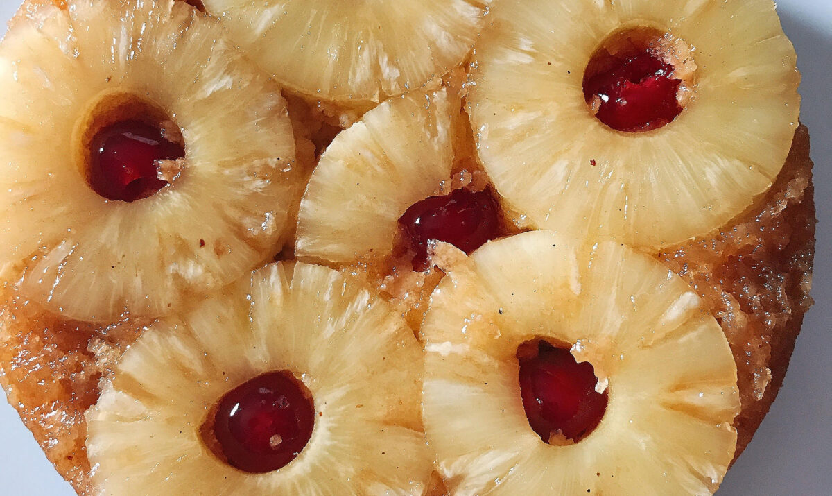 An easy to make classic upside down cake which is also perfect served warm as a dessert.
