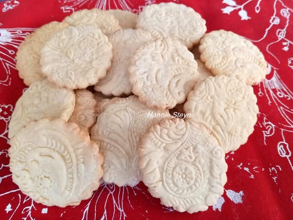 Rol dun uit op meelbestrooide oppervlak, en bak op gesmeerde bakplaat by 180ºC vir ongeveer 20 minute of tot strooikleur.