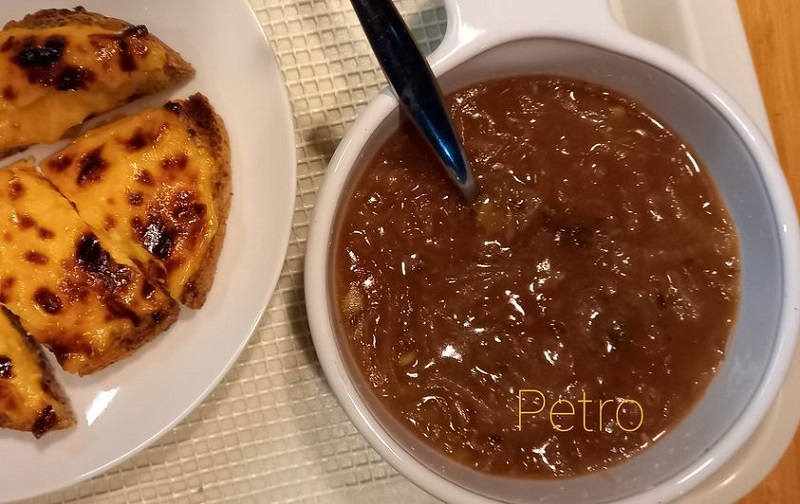 Ek weet uiesop is veronderstel om in ringe of repe te wees, maar dit maak dit vir my morsig om te eet. Ek sal volgende keer die helfte fyner kap en minder van dit in repe. Dit was nietemin heerlik.