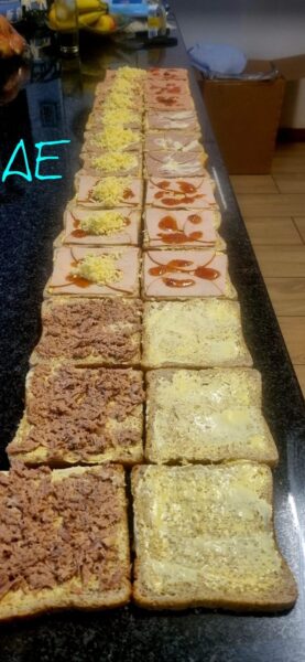 - peanut butter and jam – be sure to have peanut butter on both sides of the bread, jam in the middle