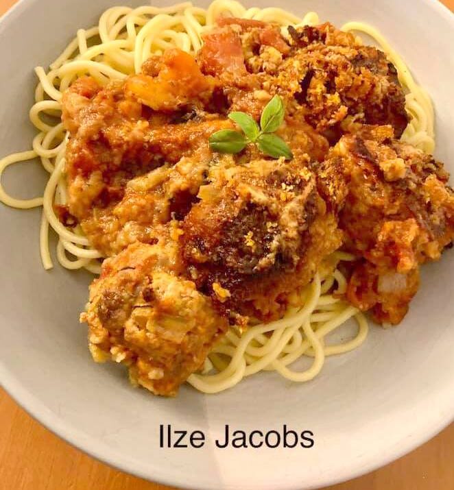 ‘n Effense variasie op frikadelle, maar verskriklik lekker. En baie maklik. Die frikkadelle word nie gebraai nie, die sous nie gekook nie en die bolaag gebruik ou brood op. Wat kan beter wees?