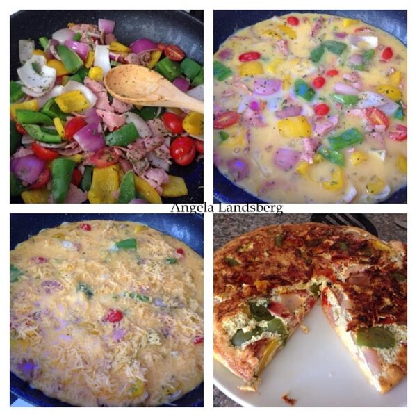 Sodra dit uit die oond kom, keer die frittata uit die pan onderstebo op ‘n bord.
