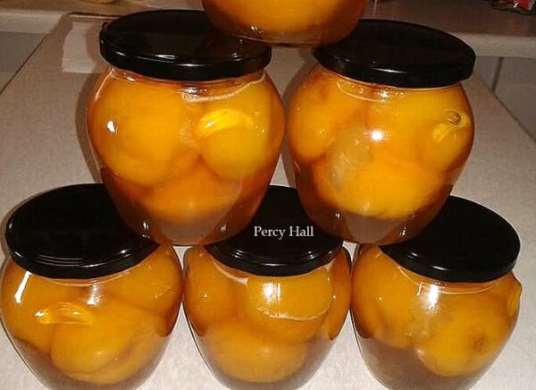Gebruik vir elke 2 kg perskes 1,5 kg witsuiker, 1,5 liter water en sap van 1 suulemoen.