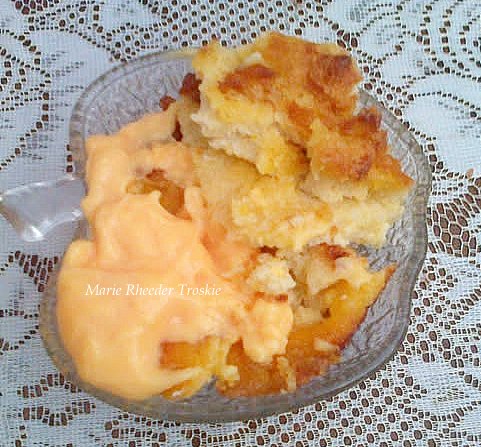 Giet bo-oor warm poeding wanneer uit die oond kom.
