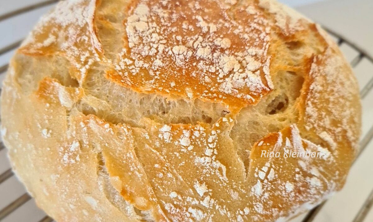 Hierdie brood is regtig maklik, en afgesien van die tyd wat mens moet wag, regtig so vinnig. Hoe langer hy staan hoe meer proe mens die suurdeeg in hom. Regtig heerlik, en ook baie lekker wanneer mens hom “toast”