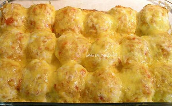 Rol dan stywe frikkadel grootte balle en pak in ‘n gesmeerde oondpan.