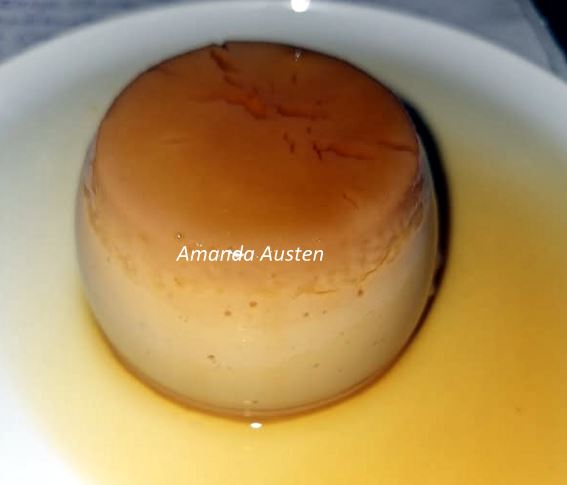 Mikrogolf vir 1 tot 2 min lank totdat die suiker begin verkleur. (Hoe donkerder die suiker karmaliseer hoe bitterder is die karamel). (Ek sit 1 vir 1 ramekin in op ‘n slag in die mikrogolf).