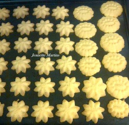 Rol uit of rol balletjies of sit deur koekiedrukker. Pak op ‘n voorbereide bakplaat.