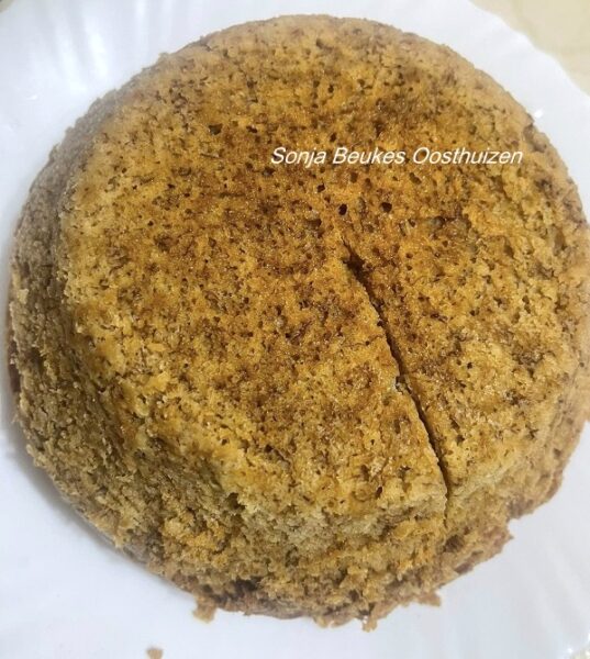 - Skakel die pot af en laat dit afkoel met die brood binne in, keer uit op ‘n bord .. heerlik !