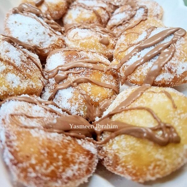 - Coat in sugar mixed with cinnamon powder. I used about a cup of sugar mixed with 2 teaspoons cinnamon powder.