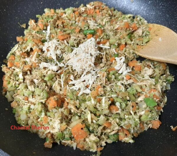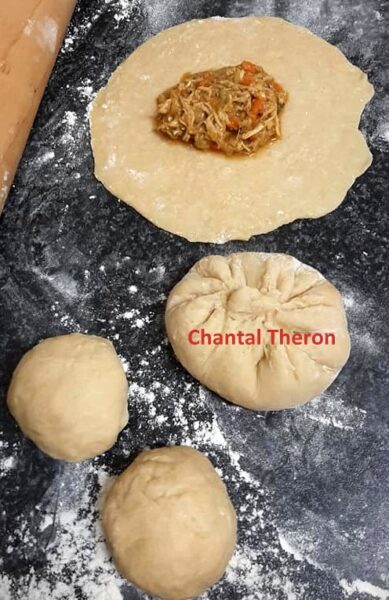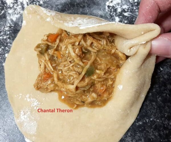 Die is nogal ‘n redelike soet deeg, so ons het ‘n soet-suur hoendervulsel gemaak saam met dit.
