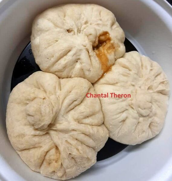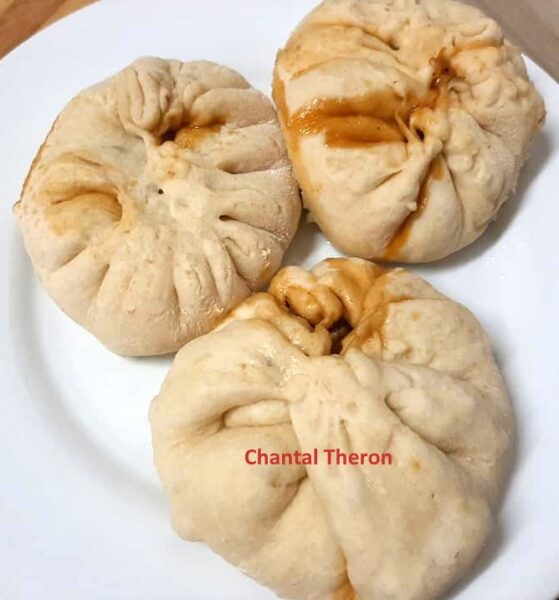 Vir die soos ek, wie nie ‘n bamboo stoomer of iets het vir ‘steamed buns’ nie. Dit werk dalk nie soooo goed soos ‘n stoomer sou nie, maar ek het gedink dis steeds effektief en het lekker uitgekom, behalwe vir die buitekant wat nie klammerig is soos dit blykbaar behoort te wees nie. Ek het my mikrogolf stoombak se gaatjies oop gelos, so sal dalk volgende keer eerder toemaak. Ek kort nog oefening om hul mooi bo toe te ‘draai’…