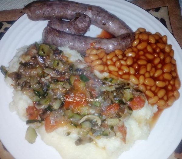 “Trooskos… vandat ek kan onthou, is dit ons Vrydagaandete… mieliepap, “shebasous”, lekker gebraaide wors en knoffelsousbone. Hierdie sous vries baie goed en kan met sukses vermenigvuldig word.”