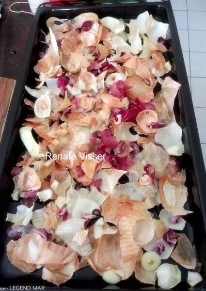 Die uie het ek op ‘n oondpan gestrooi en op ‘n lae hitte gedroog.