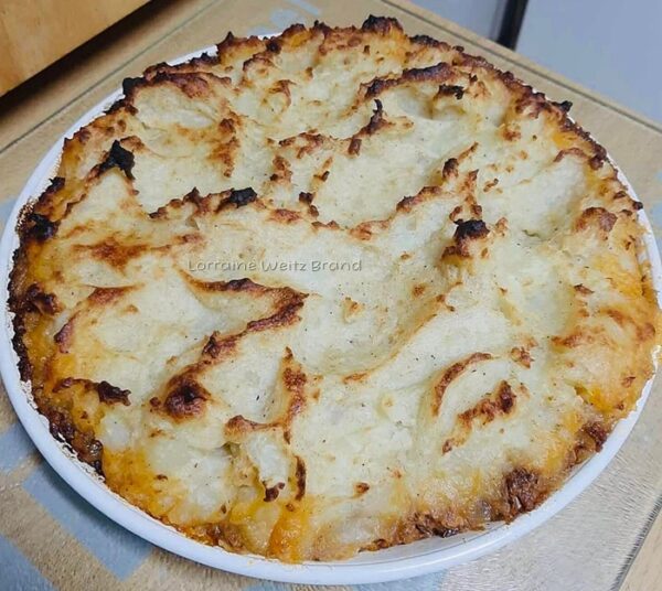Bak die vispastei in ‘n voorverhitte oond by 180ºC – 220ºC tot die kapokaartappels ligbruin gebak is en die pastei deurwarm is.